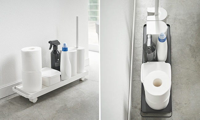 トイレットペーパーなどのトイレ用品をまとめて収納できるワゴン。