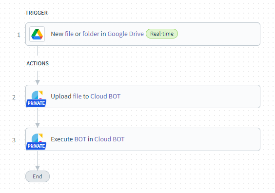 Google Drive上に保存されているファイルをダウンロードし、クラウドBOTを使用してWebサイトへアップロードを行う。