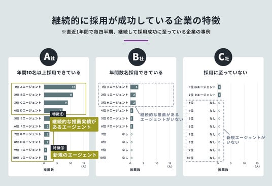 継続的に採用が成功している企業は、 初めて推薦を行う「新規エージェント」との連携を積極的に行っています。