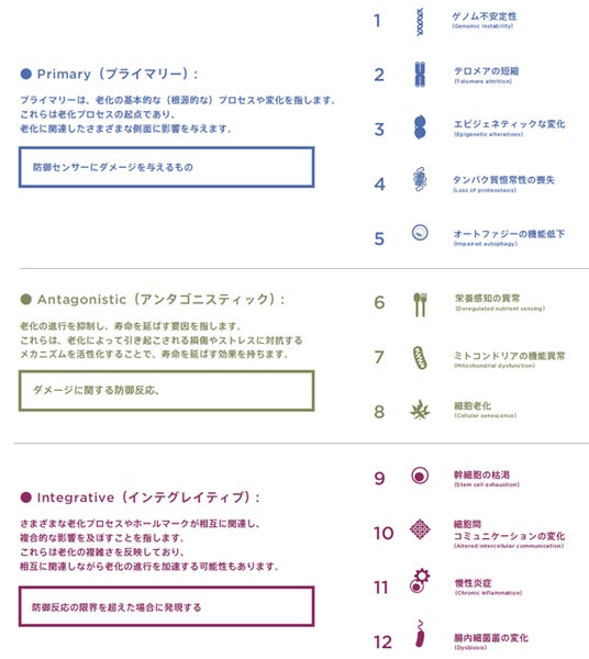 『AGING HALLMARKS』における3カテゴリー/12種類の老化要因
