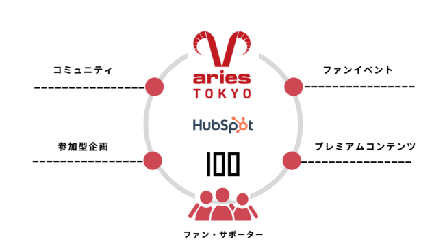 今回の実証実験は、HubSpotのCRMをコアに、aries TOKYO FCのファン・サポートとクラブを繋ぐプラットフォームづくりに挑戦します。