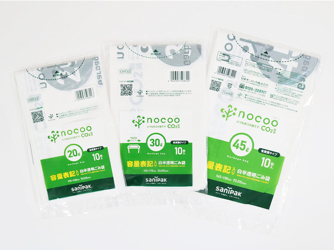 日本サニパック株式会社(本社:東京都渋谷区、代表取締役社長:井上充治 以下、サニパック)は、環境配慮型ゴミ袋「nocoo(ノクー)」の「容量表記入り 白半透明ごみ袋」シリーズから新たに、家庭用向けにコンパクトタイプや省資源タイプ、業務用向けに厚口タイプなど、22商品を5月12日より発売しました。