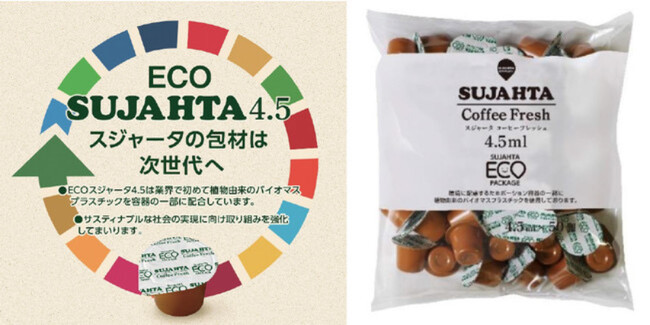 植物由来のバイオマスプラスチックを使用したスジャータめいらくグループのコーヒーフレッシュ「ECO SUJAHTA4.5」にウェーブロックの製品が採用されている。本商品はポーション型コーヒーフレッシュでは業界初となる、植物由来のバイオマスプラスチックを容器の一部に配合している商品。環境問題解決に貢献するビジネスの一環としてスジャータめいらくグループとの協業により、環境に配慮した素材を使用し、脱炭素社会へ向けた取り組みを強化している。