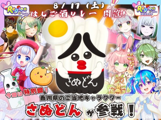 「世界と戦える地域を創る」をミッションに掲げ、自治体のふるさと納税業務を支援を行う株式会社パンクチュアル(本社所在地:高知県須崎市、代表取締役:守時健、以下当社)は、弊社が運営する地方創生バーチャルタレントグループ「VRegion」が8月17日(土)に行う「はしご酒リレー」において、特別ゲストとして「さぬどん」が特別ゲストとして出演することをお知らせいたします。