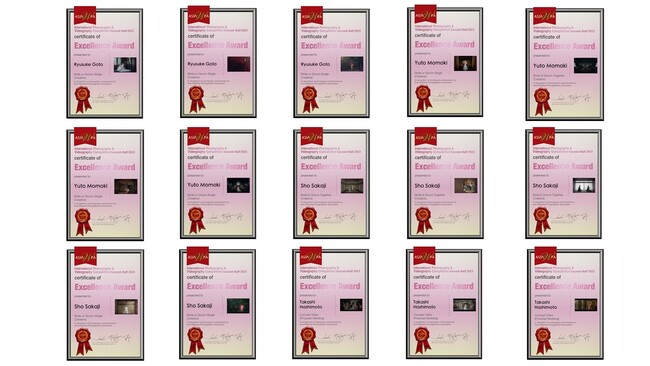 2023年は1st PLACE(部門一位)1作品・3rd PLACE(部門三位)1作品・Excellence Award(部門入賞)8作品で受賞