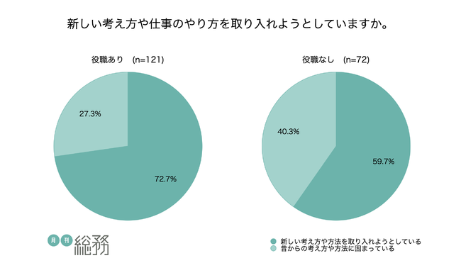 新しい考え方や仕事のやり方を取り入れようとしている総務組織は約7割