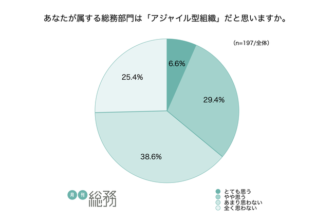 日本で唯一の総務専門誌『月刊総務』を発行する株式会社月刊総務(所在地:東京都千代田区、代表取締役:豊田健一)は、全国の総務担当者を対象に「総務の組織の在り方(アジャイル型組織)についての調査」を実施し、197名から回答を得ました。