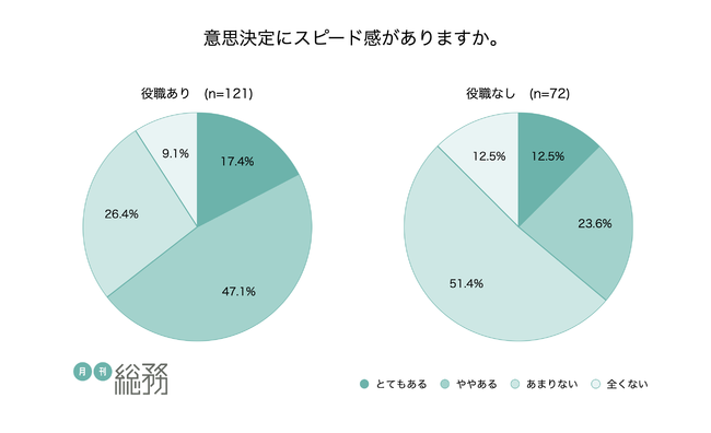 意思決定にスピード感がある総務組織は約半数。役職の有無で実感に28.4ポイント差