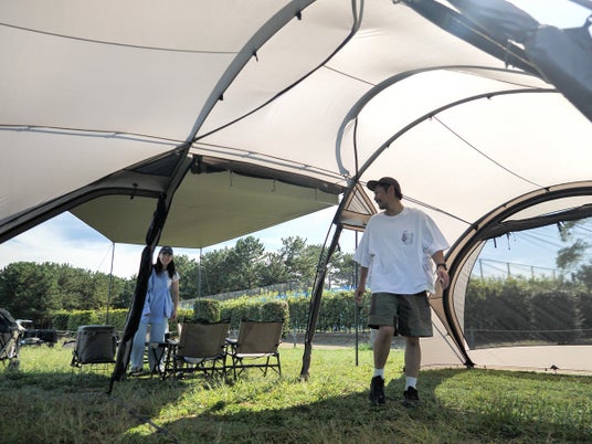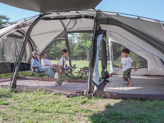 家族も仲間も、ゆったりとした時間を。 機能美と居住性を両立した、大空間ファミリーテント ――。