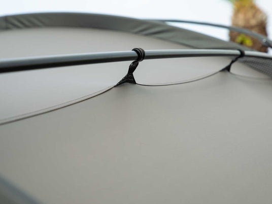 MUSCHELにはルーフプロテクタを標準装備。強い日差しや長時間の降雨からテントを保護し、結露の発生も軽減します。