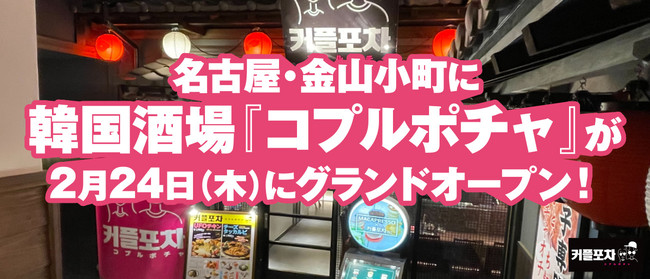 ワンズトライン株式会社(本社:大阪市北区芝田2丁目3番16号、代表取締役:山内仁)は、人気の韓国グルメを楽しめる新たな店舗、韓国居酒屋「コプルポチャ」(住所:愛知県名古屋市中区金山4丁目6-9『金山小町』内、TEL:052-228-2259)を、2022年2月24日(木)オープン致します。