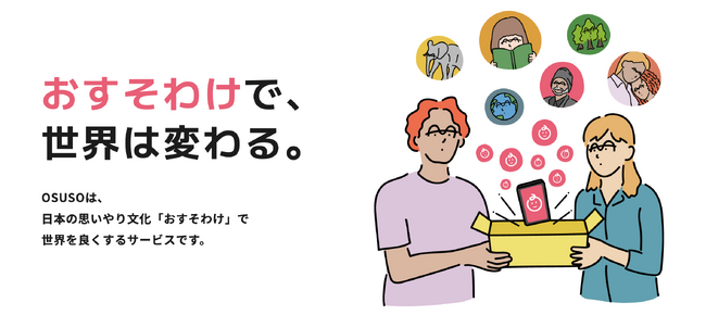 OSUSOは「おすそわけ」を通じて社会貢献を可視化し、貢献している個人が評価・還元される社会を実現することで心のウェルビーイングを創造するプラットフォームです。