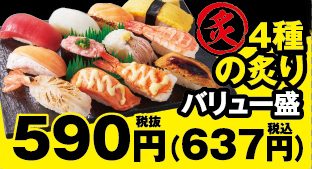 香ばしい香りが食欲をそそる!炙りが4種入って
