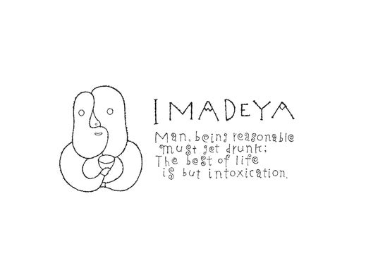 IMADEYA シンボルロゴMan, being reasonable, must get drunk; The best of life is but intoxication.