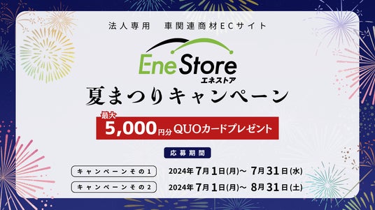 ナルネットコミュニケーションズは、多くの自動車整備工場の皆さまにEneStoreをご利用いただくため、7月1日(月)より、EneStoreの夏祭りキャンペーンを開催中です。条件(詳細以下)をクリアする全国の自動車整備工場を対象に、最大5,000円分のQUOカードをプレゼントします。