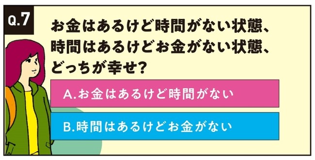 Q7「お金はあるけど時間がない状態、時間はあるけどお金がない状態、どっちが幸せ?」