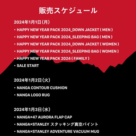 ナンガから2024年、年始から色々な限定アイテムやコラボレーションアイテム、そして毎年即完する福袋、販売や滅多に行わないセールを実施いたします!