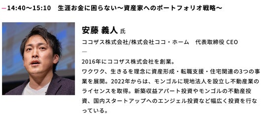 弊社代表取締役CEO安藤義人が、資産運用セミナーに登壇いたします。