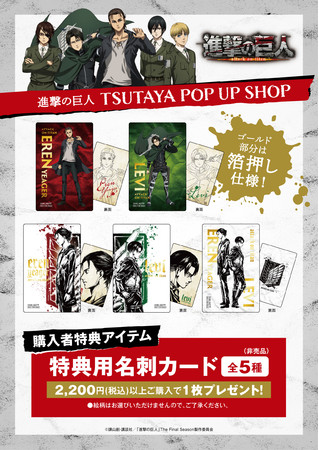 またPOP UP SHOP開催店舗にて対象のグッズ2,200円(税込)以上購入で開催を記念した限定のノベルティ箔押しカード(全5種)をランダムで1枚プレゼントいたします。