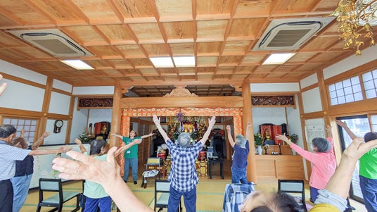 この100歳体操を寺院という身近な場所で仲間と体験することで、情報交換や新しいコミュニティ作りのきっかけとして地域住民の方に多くご参加いただいています。