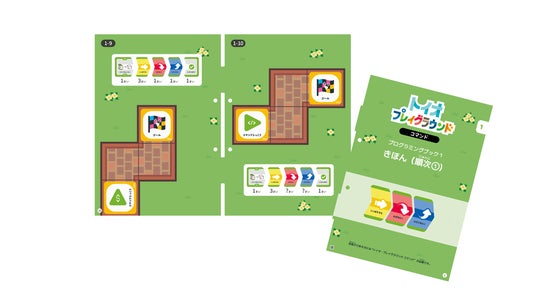 また、各ブックにはオリジナルコースを作って遊ぶことができるプログラミングマットが1枚付属しており、学習した知識を活用する発展的な学習にも対応しています。