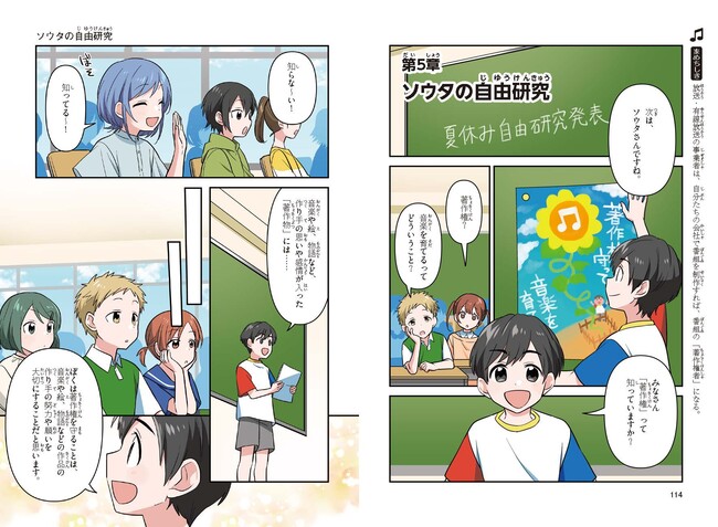 本書は、漫画を通じて楽しく音楽著作権を学べる内容となっており、図や解説記事のほか、JASRAC委託者である作曲家・林ゆうきさんへのインタビューなども掲載しています。公益社団法人日本PTA全国協議会の推薦を受け、全国の小学校(公立、私立)に約21,500部、公立図書館に約3,200部、児童館に約800部、合計約25,500部を寄贈します(非売品)。