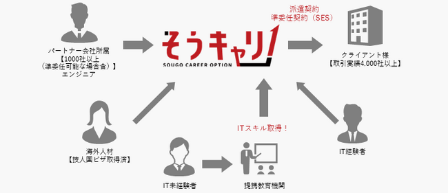「働く」に関する社会課題をビジネスで解決する、キャムコムグループの株式会社 綜合キャリアオプション(本社:東京都港区浜松町、代表取締役:大泉 高太 、以下 綜合キャリアオプション)は、ITエンジニア派遣紹介サービス「そうキャリIT!」を開始しました。