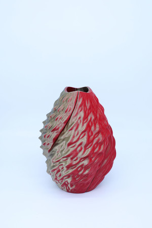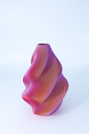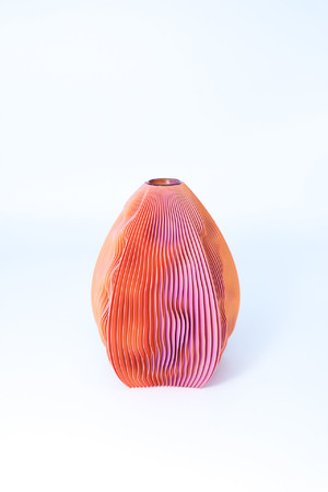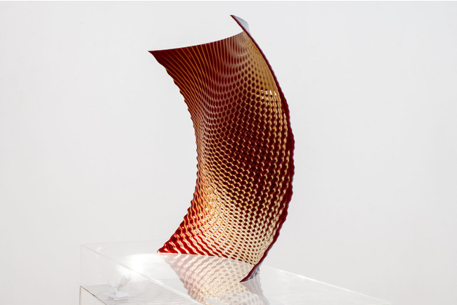 具体的には「Coloring as a code(デジタルコードによって着彩する)」という、デジタルデータを高度に扱い、立体着彩を施す技術を探求してきました。そして彼らは、3Dプリンティングでしか成し得ないような造形 / 色彩表現を探求する中で、繊細なプリーツを立体表面に配することにより「見る角度によって色が変化する」という視覚効果を創出させることに成功しました。これによりオーディエンスに対し、「実物を見ているにも関わらず、まるでCGを見ているかのような」新しい視覚体験を提供することが可能になりました。