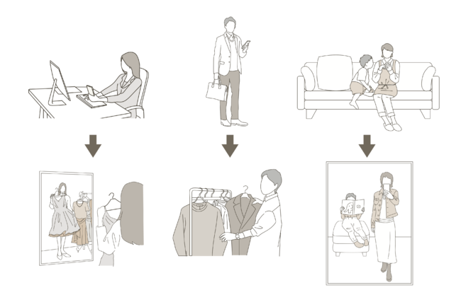今後は、自宅に居ながら試着商品を選択でき、自身の予定に合わせてお好きな時間にフィッティングルームを利用可能。また、お仕事の休憩中等限られた時間で一気にお買い物をすませたい時、じっくりいろんなブランドを比較したい時、お子様連れのショッピングの時等、様々なシーンでご利用いただけます。尚、このフィッティングルームのサービスは無料で、E SALONアプリがあればどなたでもご利用いただけます。