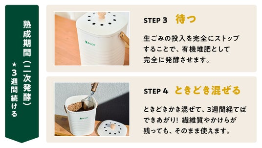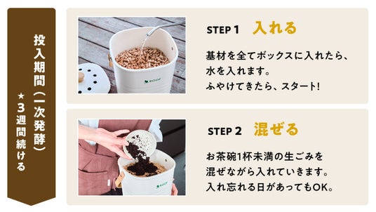 使い方はとてもシンプル。生ごみを、「入れる」「まぜる」「ふたをする」だけ。