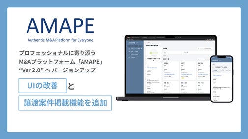 M&A仲介事業を展開する株式会社ペアキャピタル(本社:東京都渋谷区、代表取締役:田中哲,以下「当社」)は、譲受検討企業(買い手企業)やM&A支援企業等のプロフェッショナル向けに情報提供を行うプラットフォーム「AMAPE(アメイプ)」で、譲渡案件掲載機能の提供を新たに開始します。合わせて、UI(ユーザーインタフェース)改善を実施したことを発表します。