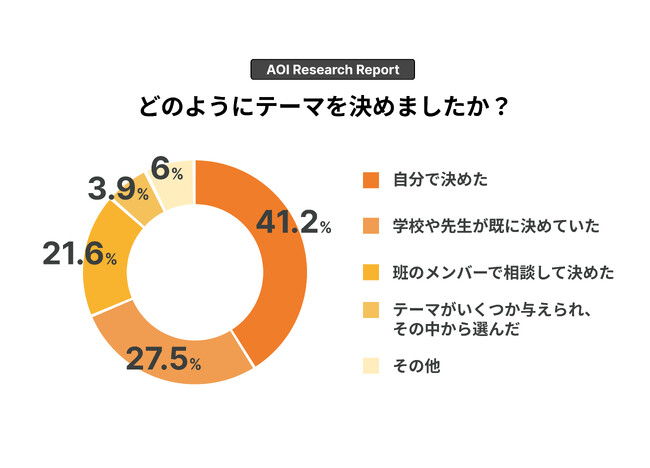 株式会社花形では自社が運営する「総合型選抜専門塾AOI」 (以下 「AOI」)に通う生徒を対象に、「探究の時間」で実施した具体的な探究活動の内容と、学習を通じた自己成長に関する調査を実施しました。