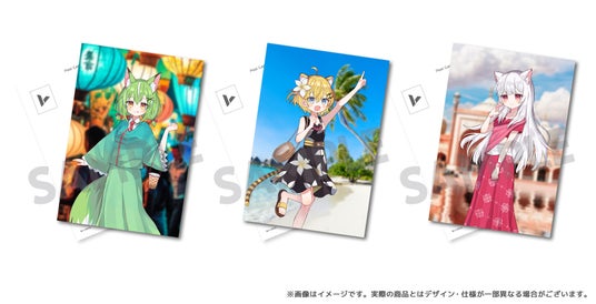 旅行のあとには、旅先衣装に身を包んだ描き下ろしイラストの特製グッズをお土産としてお届けします。