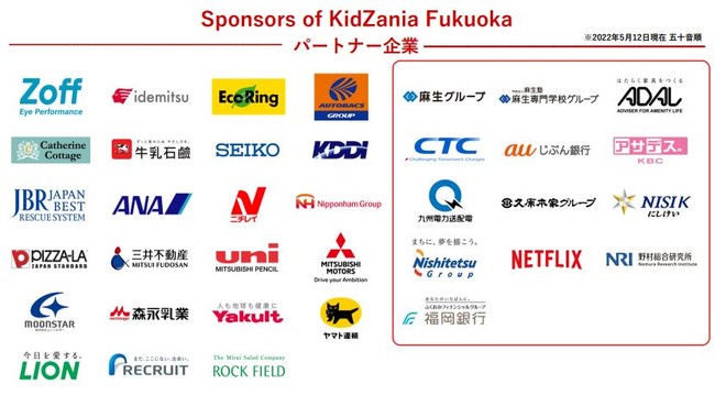 こどもの職業・社会体験施設「キッザニア」の企画・運営を行うKCJ GROUP株式会社(本店:東京都千代田区、代表取締役社長:圓谷道成、以下KCJ GROUP)は、2022年7月31日(日)に開業予定の「キッザニア福岡」(福岡県福岡市博多区、「三井ショッピングパークららぽーと福岡」内に、パビリオンやサービスなどの提供を本日時点で決定している企業・団体について、別紙のとおりお知らせします。