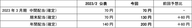 なお今回の決算を受け、期末配当を60円増配の130円(前回予想70円)とし、年間配当を200円(配当性向19.4%)とした。また来期の配当予想については年間配当200円(配当性向26.8%)とした。