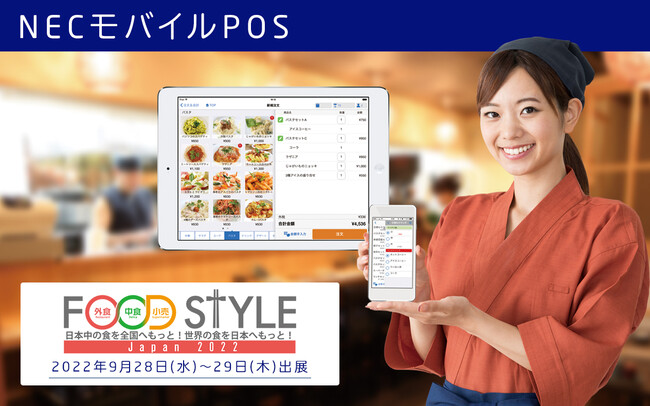 日本電気株式会社(本社: 東京都港区、代表取締役執行役員社長 兼 CEO 森田 隆之、以下NEC)は、2022年9月28日(水) ~ 9月29日(木)まで開催される「FOOD STYLE Japan 2022」(主催:株式会社イノベント)に「サブスク型POS(NECモバイルPOS)」を出展します。