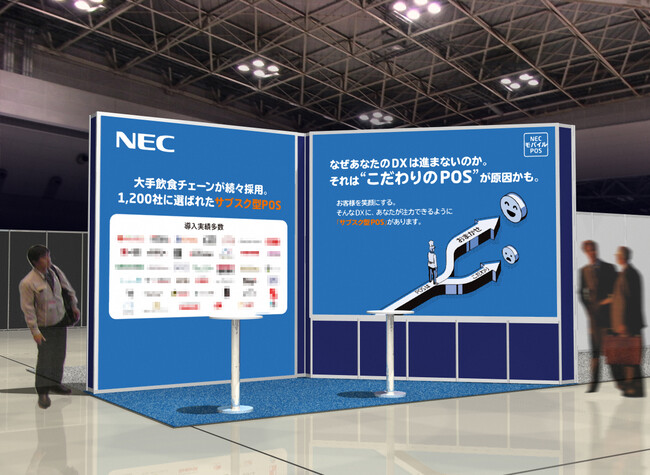 NECの展示ブースでは、飲食事業者における店舗DXの要となる「モバイルPOS」を中心としたコンセプトの展示を行います。