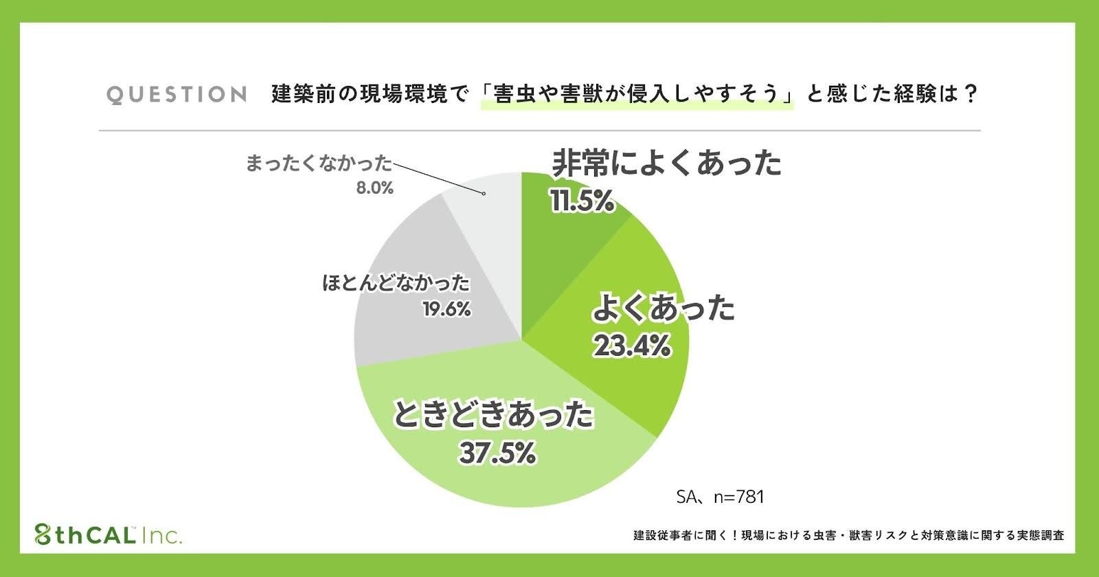 この結果から、建築現場の多くで「着工前の段階から害虫獣リスクが存在する」という実感が共有されていることが分かります。