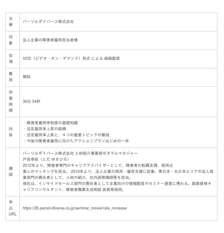 <「法定雇用率の段階的引き上げ発表と今後の障害者雇用における重要トピックの解説」セミナー概要>