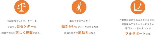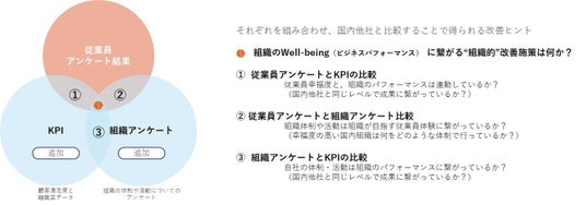 従来の従業員アンケートに加え、新たにこれらの診断を実施し、自社内だけでなく国内他社との比較することで、今まで以上に明確に「改善のために組織として何をすべきか」特定しやすくなります。