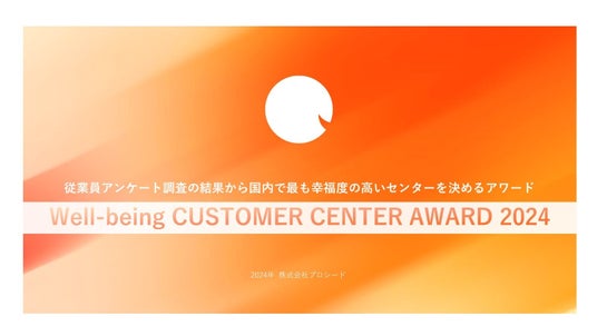 株式会社プロシード(本社:東京都中央区 代表取締役:柳楽仁史 以下、プロシード)は、エントリー組織が実際に受ける従業員アンケート調査(弊社オリジナルのWell-being診断)をもとに、そのスコアをランキング化し、国内で最も幸福度の高いカスタマーセンターを決めるアワード『Well-being CUSTOMER CENTER AWARD2024』を本年も開催し、本日(5月1日)よりエントリーを開始することをお知らせします。