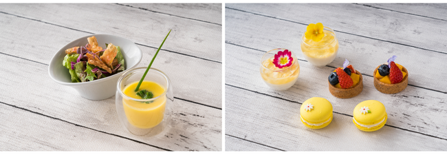 その他にもまるでリボンのようなフォルムが可愛い「チャコールクロワッサン」、ハードロール生地にほんのり甘い米粉の生地を乗せて焼き上げ、トラ柄で仕上げる「タイガーブレッド」など、ヒルトン広島ベーカー レンディー・トニーの遊び心が詰まったパンを心行くまでお楽しみいただけます。パンに加え、日替わりスープとサラダ、「ココナッツパンナコッタ レモンバーベナジュレ」や「フルーツタルトレット」などヒルトン広島ペストリーシェフ 鷲見 真奈美(すみ まなみ)による3種類のスイーツもご賞味いただけます。