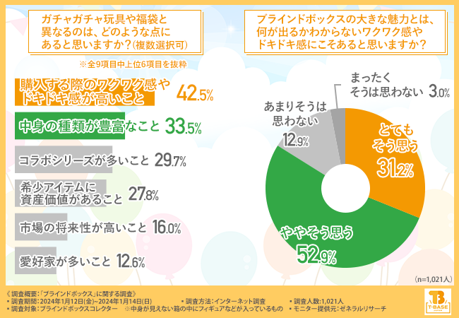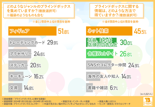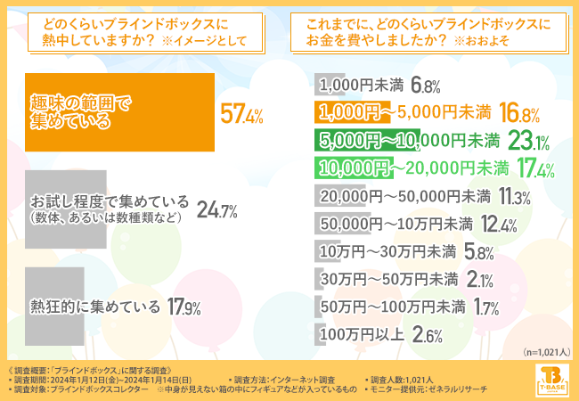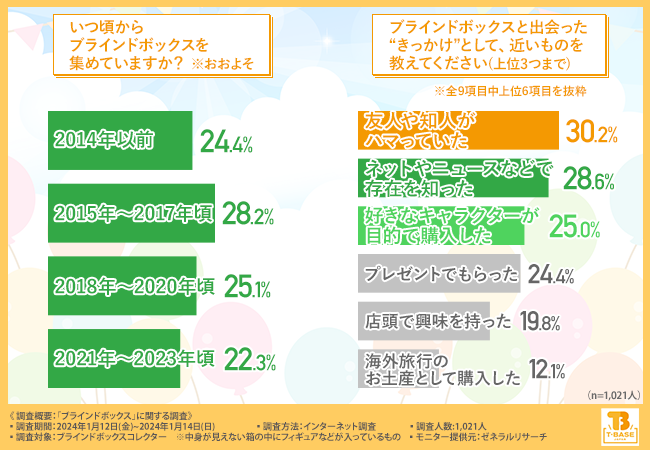『T-BASE JAPAN』を運営するトイズキング(本社所在地:名古屋市中村区、代表者:山本 祐介)は、ブラインドボックスコレクターを対象に「ブラインドボックス」に関する調査を実施しました。