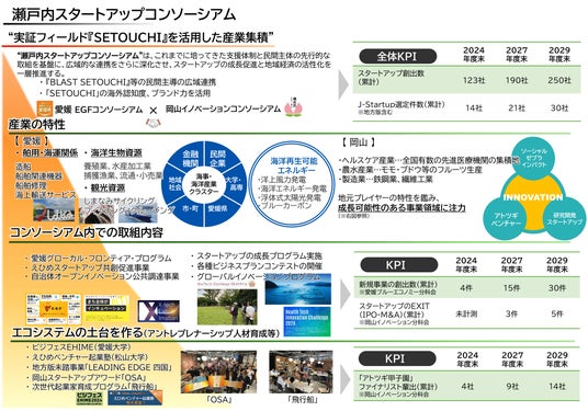 この度、内閣府による第2期スタートアップ・エコシステム拠点都市の募集に対し、岡山市と愛媛県で共同申請した「瀬戸内スタートアップコンソーシアム」が「NEXTグローバル拠点都市」として採択されました。「NEXTグローバル拠点都市」は、地域の特色ある産業構造やリソースを活用し、地域経済の活性化とともに、海外エコシステムとの連携を図る目的で新規選定され、本コンソーシアム以外にも4地域が採択されています。