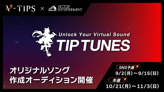 株式会社アイ・ピー・エル(神奈川県厚木市、代表取締役:吉川実)が提供する、バーチャルタレント専用の動画配信プラットフォーム「V-TIPS」(ブイチップス)と、ビクターエンタテインメント株式会社(本社:東京都渋谷区、代表取締役社長:植田勝教 以下ビクター)は、バーチャルタレント対象の共同音楽プロジェクト「TIP TUNES」(読み:チップチューンズ)を2024年7月に発足しました。このたび、2025年初春のオリジナルソングリリース権の獲得を目指す新人アーティストを募集するオーディションの予選通過者が決定しました。
