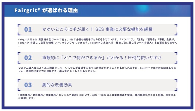 この度のリニューアルにより、Fairgrit(R)の特長や導入効果が更に分かりやすくなっております。