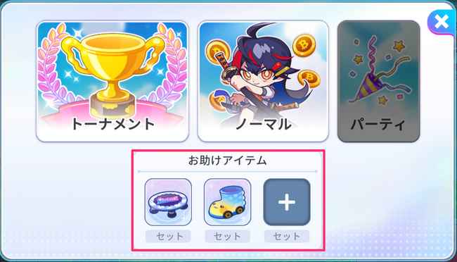 レース中に使うことでジャンプが2回できるようになったり、移動速度が上昇したりする、お助けアイテムを持ち込めるようになりました。