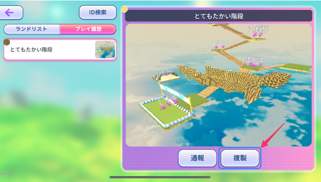 自分が遊んだことのあるランドや、シェアされたランドのIDを検索することで、他の人が作ったランドを複製し、自分のランドとして編集することができるようになりました。