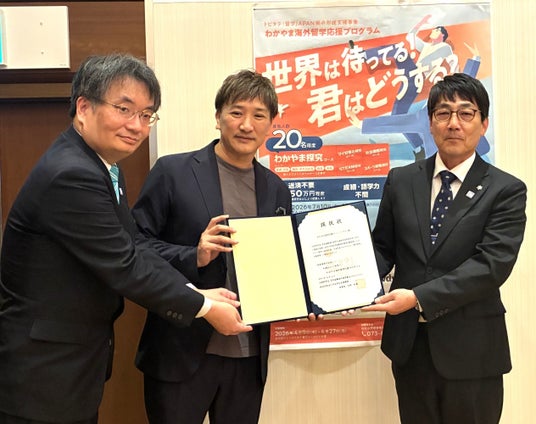 本プログラムは、和歌山県内の高校生を対象に海外留学を支援する返済不要の新しい奨学金制度で、当社をはじめ和歌山県にゆかりのある13社が支援企業として賛同し、文部科学省と日本学生支援機構の「トビタテ!留学JAPAN拠点形成支援事業」に採択されました。これを受け、本日3月25日に文部科学省から和歌山県教育委員会への採択授与式が行われ、当社代表の古澤も参加いたしました。