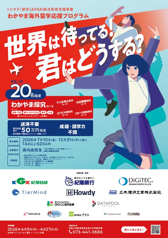 【わかやま海外留学応援プログラム 概要】募集期間:2026年4月9日~4月27日